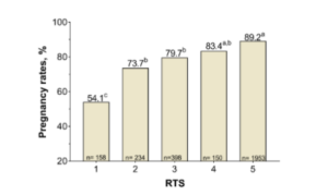 Figure 3. Effect of the Reproductive Tract Score (RTS) on pregnancy rates measured 30 days after the end of the breeding season.