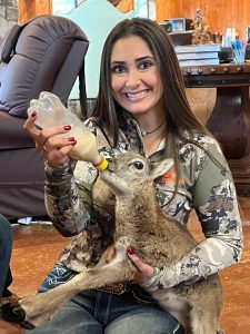 Reanna Frauens is a current UF Animal Sciences student in the Animal Biology Specialization. Frauens spent her summer internship at Aspire Wildlife in D’Hanis, Texas. Aspire Wildlife is a 2,500-acre exotic livestock breeding/hunting ranch. At Aspire, Frauens worked to determine the nutritional needs of the animals by using feed ratios and medicating feeds to prevent internal parasites. She also overlooked all the fawns and other juveniles to ensure proper nutrition, maternal care, protection, and shelter. Frauens participated in darting procedures to tag and relocate animals around the ranch. She also completed research on bottle feeding for various species on the ranch.