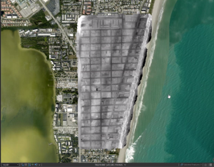Onto the colorless images of LiDAR, photogrammetry (the science of taking measurements from photographs) and its aerial photos are then overlayed to create a colorful 3D visual of land features (Figure 3). This multi-image and overlapping photos fused together are called an orthomosaic image. Orthomosaic comes from the Greek orthos ‘straight, right’ and mosaic, meaning a pattern of smaller pieces creating a larger picture. In 2024, an estimated ten thousand pictures helped create the orthomosaic images of Cape Canaveral.