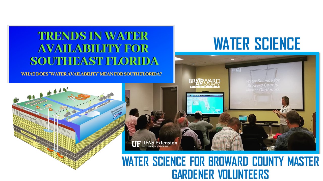 Broward County is entirely urban and considered “built out.” Environmental engagement and outreach are priorities in our extension programming concerning water quality and quantity issues in our urban communities. Given that over 1,700 miles of canals are found in Broward County, stormwater and irrigation runoff, contaminant with nutrient leaching, pose significant threats to water quality. We know from studies that as Florida’s population growth and water demands increase, the Florida landscape will play a vital role in future water demands.