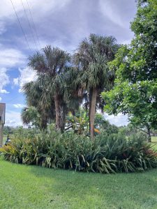 From a distance, the area appeared as nothing more than a jungle of overgrown bromeliads and a dense mass of ferns. Rising above this sea of vegetation were five sabal palms. Reaching them on foot was nearly impossible, due to the very large armed bromeliads. A rhomboid arrangement formed by four of the palms immediately flashed new ideas. I could use the shade they formed for an understory that could flourish in shade. Getting closer, I spotted also a few pink tabebuias and gumbo limbos that were volunteering in the area and were growing nicely and undisturbed. On the far west side of the garden, a fiddlewood grew with sweetly fragrant flowers, surrounded by butterflies and other pollinators.