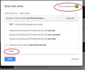 Florida with the link can view.” Select “More” and select “On – Public on the Web” or “On – Anyone with the link.” Select Save. - Please remember to follow UF ADA Guidelines and UF/IFAS Best Practices with anything you choose to use.