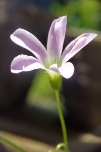 Also popping up in yards and potted plants everywhere is Creeping woodsorell (Oxalis corniculata L.) It has delicate yellow flowers with five petals and often reddish or purplish leaves. It has a more spreading habit and produces stolons (aboveground plant stems that root at nodes). This one is a Florida native weed and will be found throughout the state, especially in undisturbed natural areas. The nuisance factor of Creeping woodsorrel is it can form dense mats, competing for water, food and light with our cultivated plants.