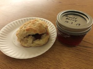 When beautyberries start producing their eye-catching, bright purple fruit, our office gets lots of questions. People want to know what it is, where can they find it, and can they eat it? I recently tried a berry, and it was tasty. They’re small and a little mealy, but birds and deer absolutely love them. They are not toxic and were used by Native Americans for a root tea to treat fevers, stomach aches, malaria, and more. The first time I wrote about beautyberry jelly 5 years ago, I’d never tried it. A generous volunteer brought me a small jar to try, and it was absolutely delicious. Of course, a little (or a lot) of sugar can make most anything taste good—and the finished product is a beautiful, translucent shade of fuchsia.