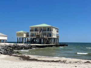 Due to sea level rise, hurricane impacts, and the natural longshore current in the Gulf, the island is constantly in flux. Several houses on the west end of the island are barely hanging on and will most likely collapse into the open water in a matter of years. Island officials and local biologists are doing their best to support and restore existing marshes and dune vegetation to maintain the island as long as possible.