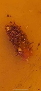 Every now and then, we get a true “what IS it?” come through our office. A couple of weeks ago, a local oysterman found one of the weirdest organisms I’ve ever seen. This tiny creature was only an inch long, and had what looked like fleshy bull horns protruding from its head. There were rows of additional little tentacles down its entire back, which it waved around frantically upon its discovery. The oyster farmer shared photos with Thomas, our Santa Rosa County Sea Grant agent, who then shared it with Rick and me in Escambia County.