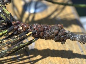 Unfortunately, even an evergreen in an Eternal City isn’t immune to attack by invasive species. This time, it’s an insect from our region, the North American pine tortoise scale (Toumeyella parvicornis). Only present in Italy for a decade, the insect has caused widespread damage and destruction. The most recent survey showed 80% of pines in the region were affected by the scale. Scale insects suck the sap from living trees, and the production of the waste product—sooty mold—impedes photosynthesis.