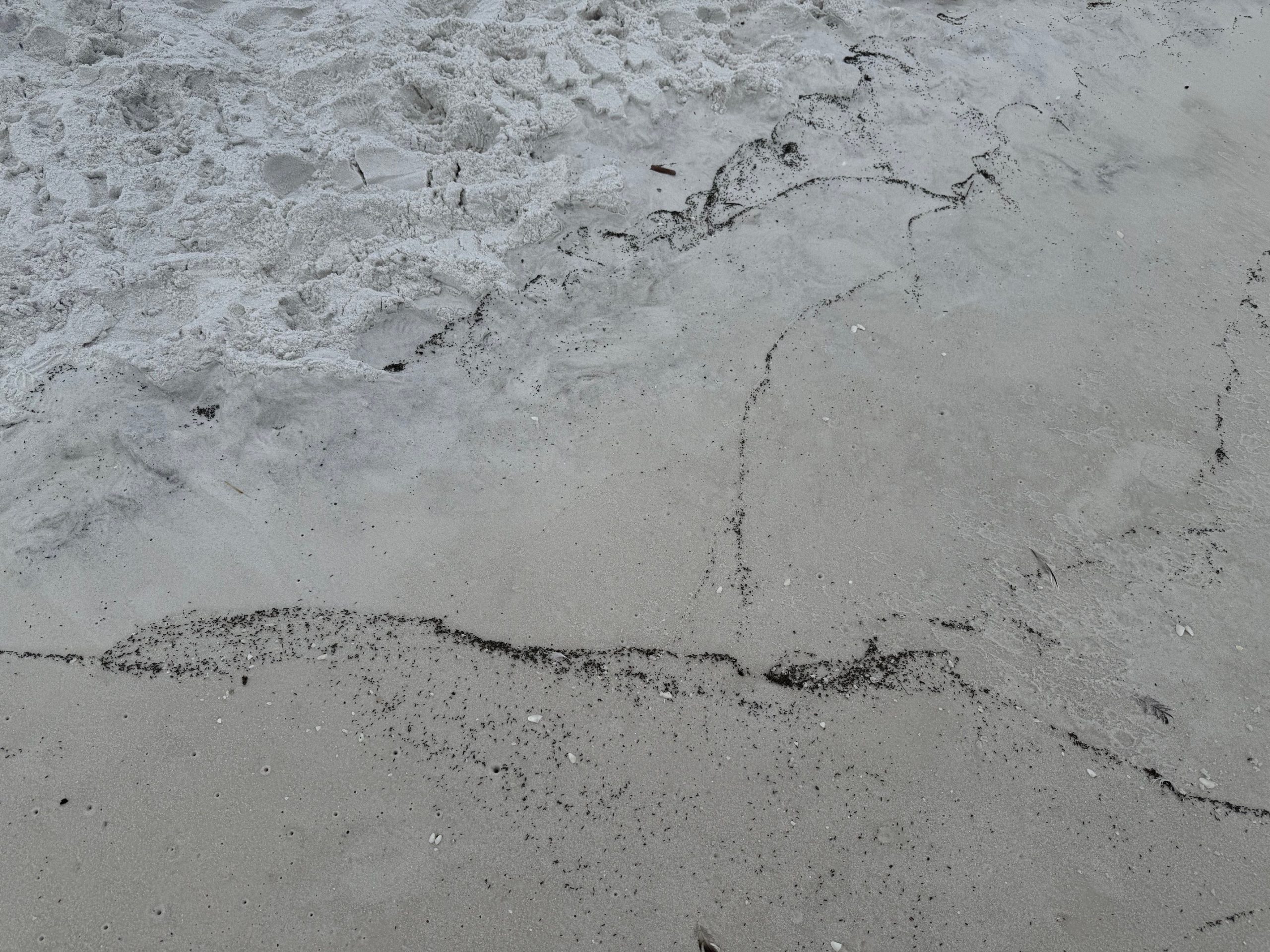 Earlier this week, I was included in an email thread from our Sea Grant Agent in Walton County. She’d been sent a photo by several county colleagues, originating from a beach visitor. The photos were of rows and rows of tiny brown/black specks along the beach sand. No one knew exactly what they were looking at as it was passed up the chain.