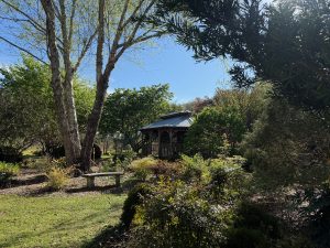 An edible garden with a seasonally rotating crop of vegetables is located on the south end of the garden, adjacent to colorful tropical and butterfly-attracting plants. In the center of the garden is a large gazebo, and behind that is a retreat space for quiet meditation. Circling around the gazebo, you’ll find ornamental grasses, a composting demo, and a handful of fruit trees. Closer to the second arbor is a Japanese Zen Garden. On the northern edges of the garden is an outdoor classroom, greenhouses, a plant propagation area, and a small native plant garden.