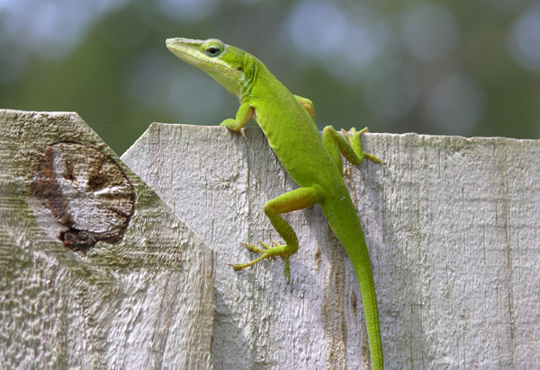 There’s plenty of animals you might call “cute”, but lizards usually aren’t among them. However, I’d take exception to that premise when discussing the green anole (Anolis carolinensis). With big blue eyes, brilliant green skin, and flirty males doing push-ups and flexing their dewlaps (the pink throat fan) at you, these little reptiles are more endearing than most.