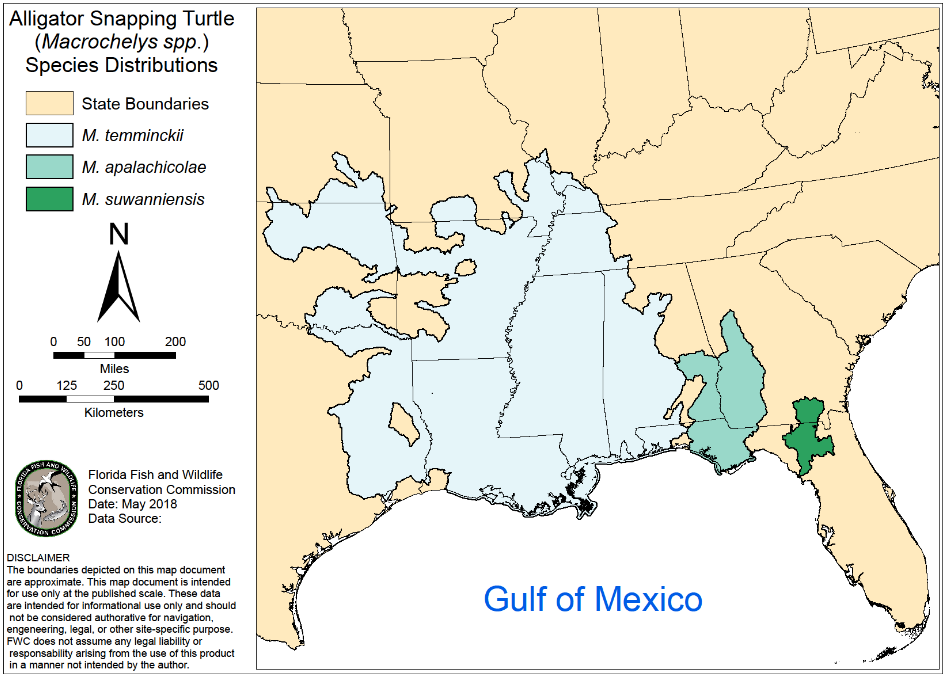 Alligator snapping turtles were hunted and trapped to the point that they are now considered a Species of Special Concern in Florida. The Suwanee turtle is listed as threatened, which gives it an additional level of protection. In addition to hunting, their populations declined due to habitat loss, water quality issues, and injuries from boat strikes and fish hooks. In Florida, it has been illegal to “take, possess, or sell” the alligator snapping turtle or its parts since 2009. The US Fish and Wildlife Service is currently conducting a federal review of its protection status.