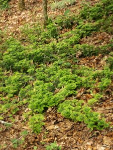 I love hiking in new places. Different terrain, new perspectives, and always some plant or animal I’ve never before come across. Last weekend on another hike along the Cumberland Plateau in southern Tennessee, we noticed a low-growing, bright green but unfamiliar plant. It was in a shady, slightly moist area and looked like moss—if moss grew like a 4” tall cedar tree.