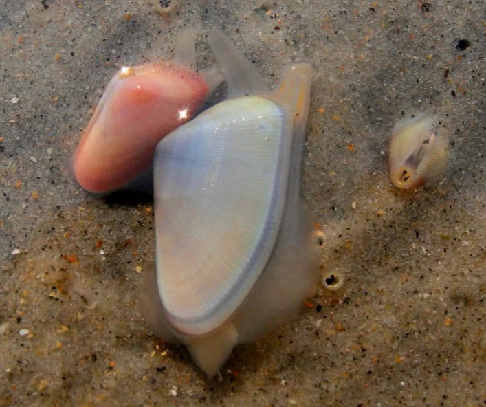 Because they’re small and abundant, these clams are a common prey item for crabs and shorebirds. Coquinas have adapted and survived for so long because they can bury into the sand, using their muscular foot to dig vertically several inches under the surface. They can even “surf” waves to move down the beach.