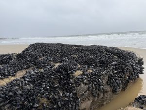 A boulder completely covered in California mussels at low tide. Photo credit: Carrie Stevenson, UF IFAS Extension