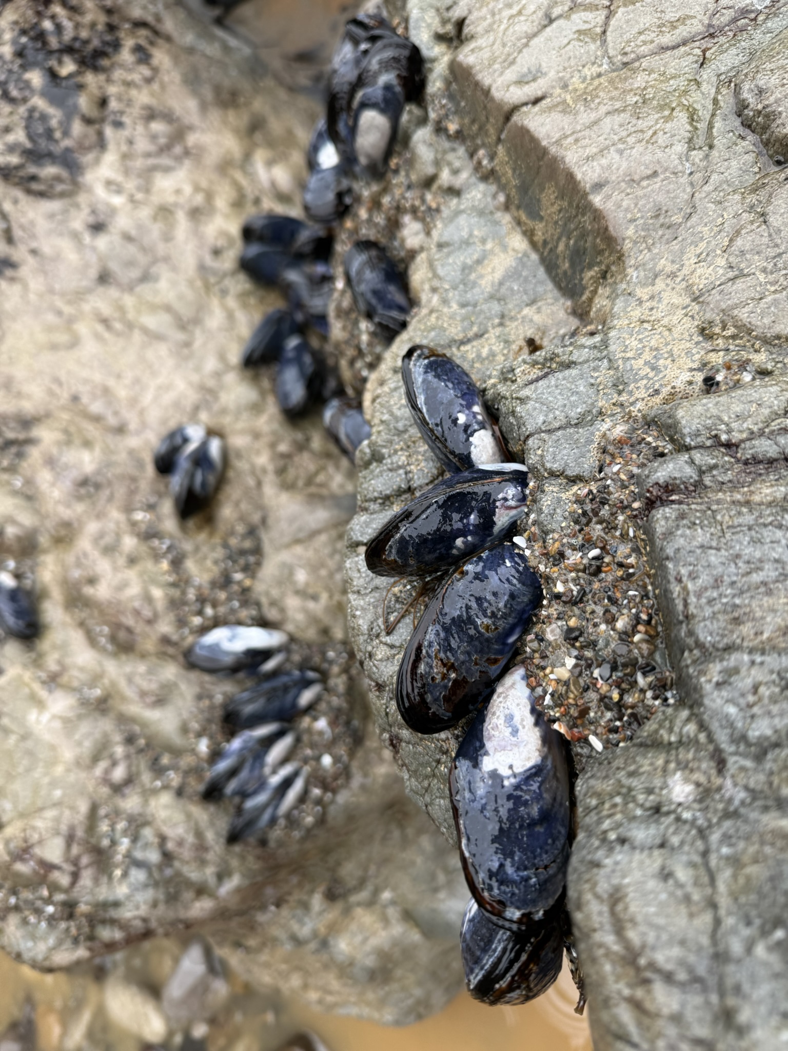 Wrapping up my trio of west coast-based articles today, I’m focusing on California mussels (Mytilus californianus). When we walked down the beach near Malibu, every single rock was covered in these bulky shells. Packed in close together, they were an eye-catching shade of bluish purple, tinged in black. They were large—5-6” long—more like big oysters than the small mussels and clams we grow in Florida. Similar to oysters in our area, these mussels are “ecosystem engineers” that build structures and habitat for other organisms. Their large clusters also protect shorelines from erosion.