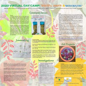Situation: Due to the 2020 pandemic, Florida 4-H offered summer programs through virtual delivery systems, hence the creation of “Beautiful Invaders and Native Beauties.” Most Floridians do not understand how invasive species impact our native ecosystems. By educating the youth enrolled in the day camp, we hoped that they, in turn, would educate their parents and neighbors. Objectives: The objectives were: (1) to educate youth about invasive and native plants in Florida’s ecosystems; (2) to create experiential lessons that would be available on the Google site and through daily Zoom sessions; (3) and to include a community service component. Educational Methods: The camp was designed to be a week-long camp, and was held July 13 – 17, 2020. Each day had an optional Zoom meeting that included a variety of educational materials, crafts, community service, activities and projects, career investigation, journaling, and a review. Youth were able to complete the five asynchronous sections, available on the Google site: https://sites.google.com/ufl.edu/environmentaleducation/home?authuser=1, at their convenience. A special aspect of the program were the interviews with environmental scientists and professionals. Results: Fifty-three youth registered for this camp. Five to ten youth attended each day’s Zoom session and both formal and informal evaluation demonstrated knowledge gain, attitude change, and behavior change. Daily reporting from the youth showed that they were outside investigating, identifying plants using their apps, and eradicating invasive plants in their yards. “The coolest thing I learned during this 4-H program is what invasive plants and animals are and how they affect our environment.”