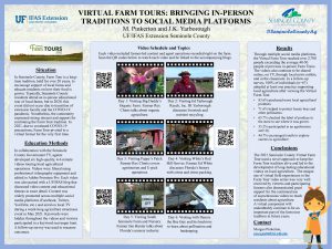 Situation: In Seminole County, Farm Tour is a long-time tradition, held for over 20 years, to encourage support of local farms. Typically, Seminole County residents attend an in-person educational tour of local farms, but in 2020, this event did not occur due to transition of extension faculty and the COVID-19 pandemic. Nonetheless, the community expressed strong interest and support for continuing the Farm Tour tradition. In 2021, due to continued COVID-19 precautions, Farm Tour pivoted to a virtual format for the very first time. Methods: In collaboration with the Seminole County Government TV, agents developed six high-quality videos touring local agricultural operations and included farmer-led content on topics like organic agriculture, agritourism, livestock, the nursery industry, pollinators and more. Videos were also paired with a blog that dove deeper into the topics. Content was shared and promoted on social media during a week-long event. A follow-up survey was used to measure outcomes. Results: Through multiple social media platforms, the Virtual Farm Tour reached over 2,700 people exceeding the average 40-50 people at previous in-person Farm Tours. In a follow-up survey, 100% of individuals (n=67) adopted at least one practice supporting local agriculture after viewing the Virtual Farm Tour (ie. 83.6% purchased more local agricultural products, 71.6% helped to protect honey bees and other pollinators, 65.7% checked the label of produce in the store to see where it was grown, 55.2% participated in an agritourism activity, and 44.7% encouraged youth to explore careers in agriculture). Conclusion: Although a novel approach, the Seminole County Virtual Farm Tour kept the tradition alive and led to long-lasting, locally focused educational content. Feedback from farmers and viewers was extremely positive and it is no doubt that a virtual component will be important to Farm Tour in the future.