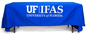 This Gator blue tablecloth is large enough to drape over the sides of a banquet table and provides a definitive UF/IFAS statement at a tradeshow or a tailgate. IFAS, Extension, 4-H and Master Gardener styles available.