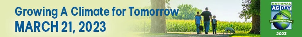 March 21st is National Agriculture Day, a time to recognize and celebrate the men and women who produce our food, fuel and fiber. Now celebrating its 50th Anniversary, the theme for this year’s Ag Day is “Growing a Climate for Tomorrow”. (https://agday.org)