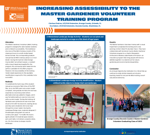 Results: The MGV trainee with a visual impairment completed the training and is now working on their initial 75 volunteer hours. They have collaborated with the Seminole County MGV program to co-lead a therapeutic horticulture initiative called Seeds of Inclusion- an innovative program that brings people with diverse abilities together in a shared love for nature, gardening and environmental stewardship.