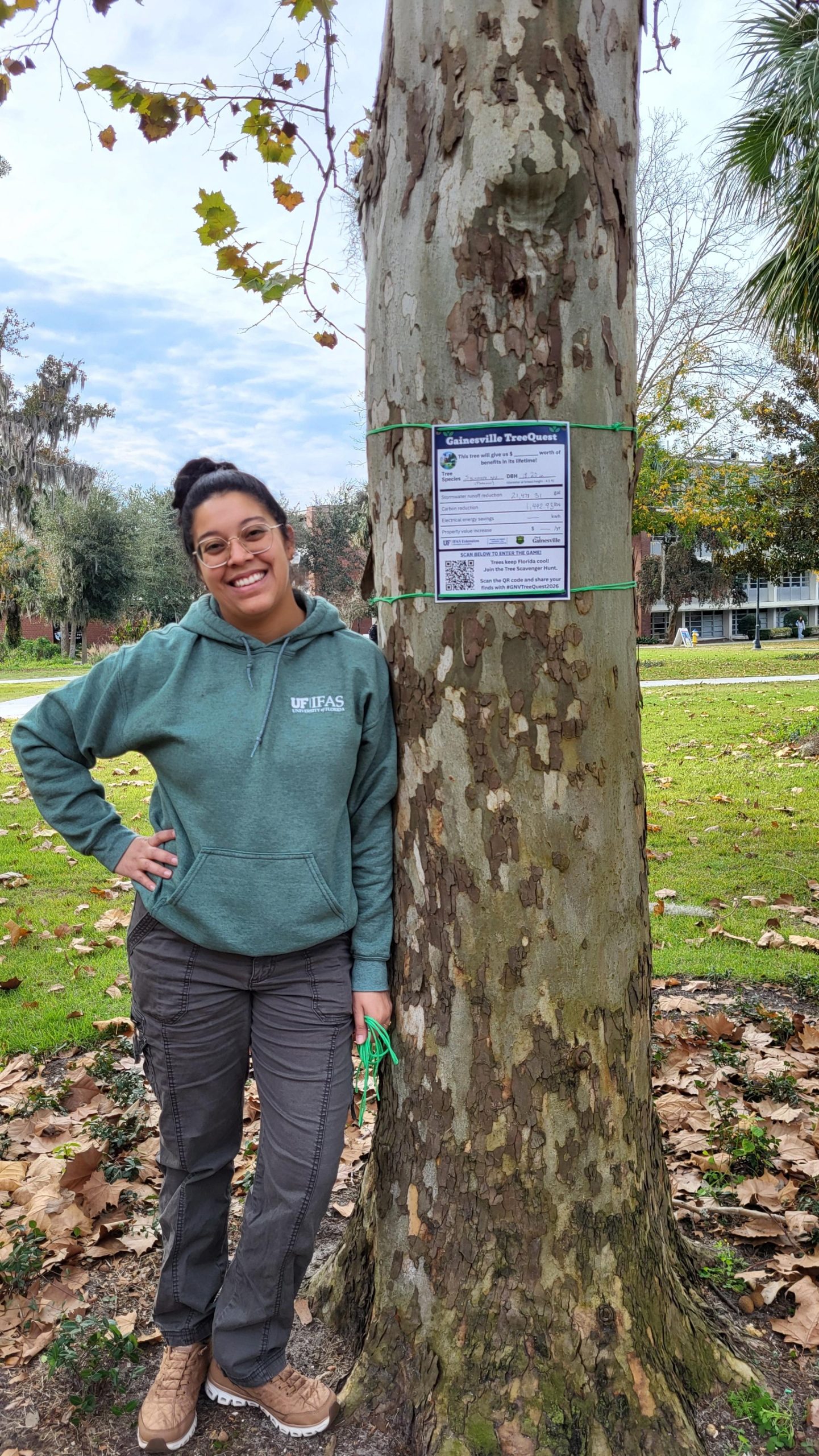 Alyssa Vinson—Extension Agent and UF/IFAS Urban Forestry Extension Council member—sparked our Gainesville Tree Quest through her leadership of Hillsborough County’s Tree Quest. Thank you to Alyssa for sharing resources that made the Gainesville Tree Quest possible!