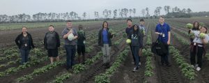 February was also a busy month for field trips to the UF/IFAS Hastings Agricultural Extension Center. Ms. Alexis Tilton brought out her Palatka High School students for a field trip on February 21st and transportation costs were covered through the Putnam County Farm to School Program. Ms. Diaz and Ms. Colindres from Indian Trails Middle School organized their own transportation and brought their kids out the farm on February 25th. The kids were fascinated as they walked through large field plots planted in potato, cabbage, brussels sprouts, broccoli and artichokes. They learned a little about crop science and physiology, but mostly enjoyed harvesting their own cabbage, broccoli and brussels sprout stalks. Only a couple kids were able to identify the artichoke crop, despite the many artichoke heads on the large spiny plant. They were all surprised to see that the brussels grew on a tall stalk and had to be plucked off one by one. UF/IFAS Extension believes that planting knowledge is just as important as the hands-on learning experiences with growing and harvesting crops.