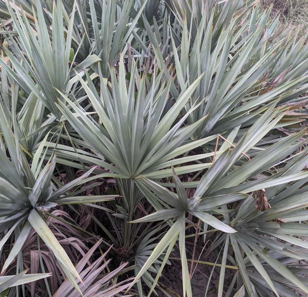 The saw palmetto (Serenoa repens) is synonymous with Florida, being found in every county in the state, from the dunes to inland forests. It is highly salt tolerant, and as a larger and denser plant than many of the grasses, it can protect the plants landward of it from salt spray (especially up north where we don’t have many sea grapes.) The stems of this plant have a saw-tooth ridge, which gives them their name and is a good reason to give them plenty of space! The berries of the saw palmetto are an important food source for many birds and mammals.