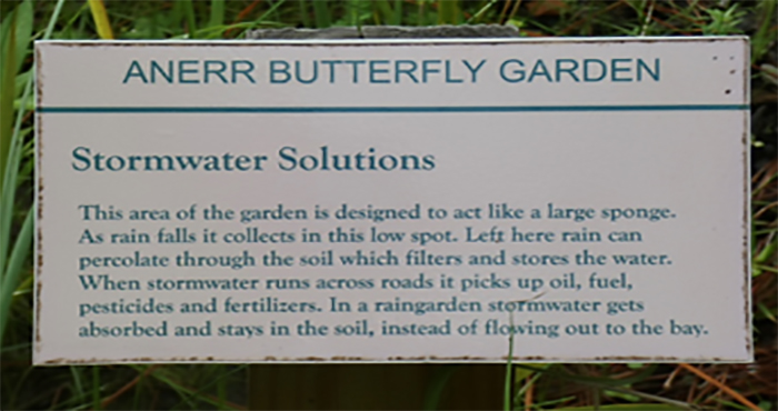 The presentation at ANERR is based on the UF/IFAS Florida Friendly Landscaping™ program, but also highlights specific local examples of problems and potential solutions. Three key points were that stormwater runs into the bay without being treated; that storms flood city sewage systems; and that many homes in the county still rely on septic systems. There is no question that stormwater carries herbicides, oil, dissolved fertilizer, and other debris into the bay. Our focus needs to be on reducing those items so our waters will and can support native fish and wildlife.