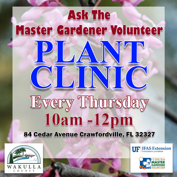 UF/IFAS Wakulla County Master Gardener Volunteer Plant Clinic Every Thursady, 10am – 12pm – 84 Cedar Avenue, Crawfordville, FL 32327
