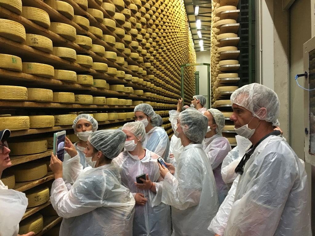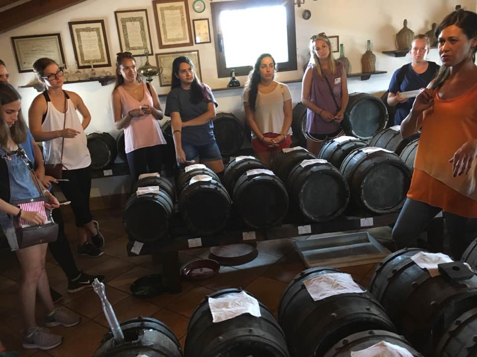 The group boarded the bus very early the next morning to see how Parmigiano-Reggiano cheese is made, then visited a producer of the traditional balsamic vinegar in the town of Modena, where everyone got to taste a balsamic vinegar that had been aged for 100 years! The group next toured a winery that makes Lambrusco wine and learned how this sparkling wine is made, and ended the day with a BBQ back at our Agriturismo. The following morning we toured a beautiful castle near the town of Parma, then visited a producer of the famous Parma ham, followed by lunch featuring several different types of ham.