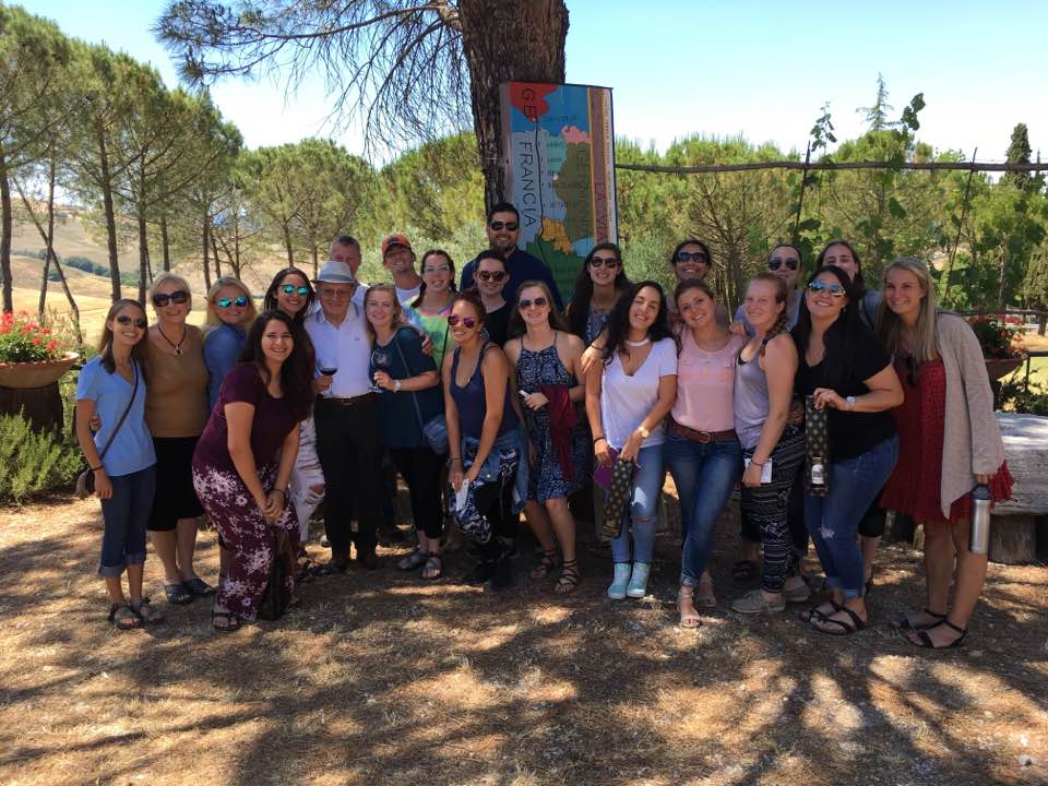 The last day of technical tours started with a visit to a Pecorino cheese producer in the Tuscan countryside where the group learned how these cheeses are made from sheep’s milk and tasted 8 different Pecorino cheeses. The next stop was a winery near the town of Montalcino, where the world famous Brunello di Montalcino is produced. The group was greeted by Mario, the 87 year old proprietor of this winery, who gave a very lively tour of this historical winery. Later that afternoon, the group drove to the town of Siena for a quick tour of this beautiful Tuscan town before returning to our Agriturismo for the last time.