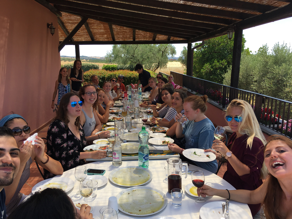 The next morning the group boarded our little bus for the last time, headed for our final destination, Rome. Along the way, the group visited La Cucina Sabina, a beautiful villa outside of Rome managed by a UF alumni, Mike DiGirolamo, who has established an endowment for this trip. Everyone learned about the ancient olive trees growing in the area and the olive oil they produce, and were treated to a wonderful pizza lunch! That evening, the group gathered in our hotel to go to our “last supper” together, which featured traditional Roman food and lots of reminiscing about our trip.