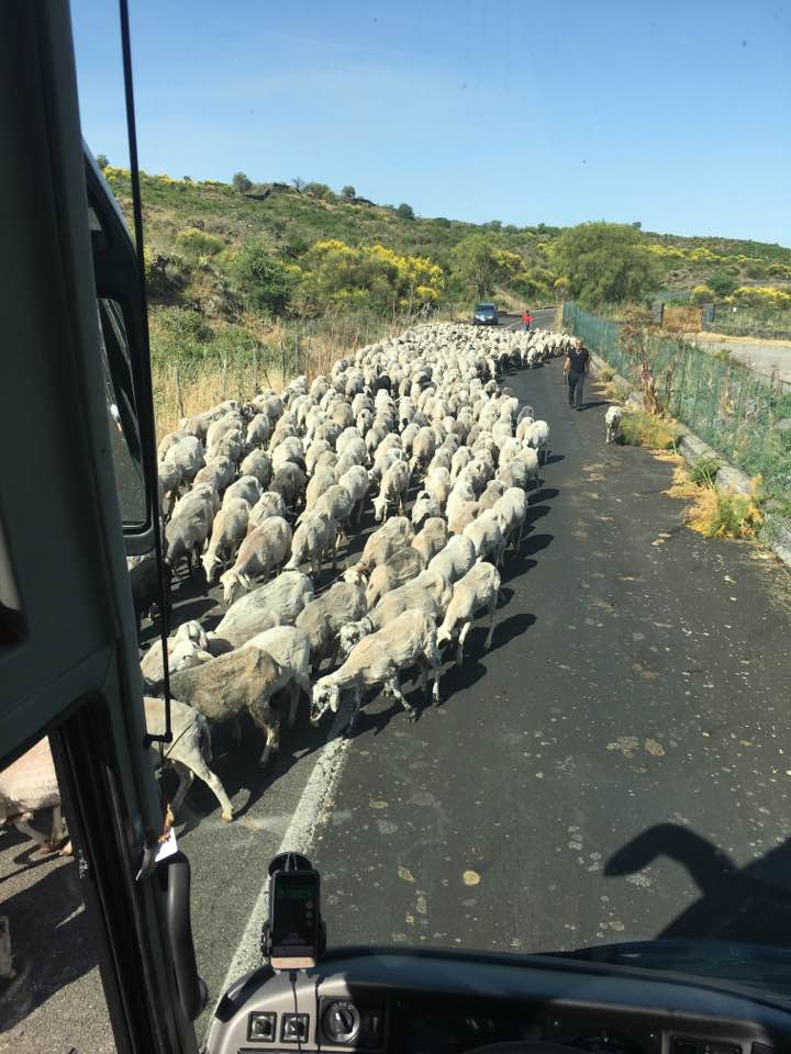 The next day on a very curvy drive along Mt. Etna, a large herd of sheep walking down the road briefly interrupted our drive. In Bronte, the students learned about the famous pistachios that grow in this area and how they are processed, and then how specialty dried pasta was made. The next day the group departed for a long drive across the Sicilian countryside to the town of Palermo, where we visited an expresso coffee roaster and learned all about expresso.