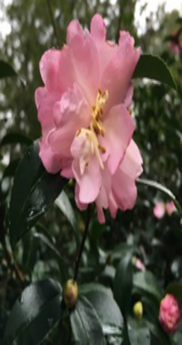 Camellias edis ifas edu 2Camellias prefer a slightly acidic soil (pH 5.0 to 6.5), high in organic matter (https://edis.ifas.ufl.edu/pdffiles/EP/EP00200.pdf ). The University of Florida publication also recommends preparing the entire bed with organic material, and not just the planting hole. The winter months are best for planting new camellia plants so their root system can become established before the summer heat. Be sure to plant camellias at the right depths – with the root ball at least 2 inches above the soil line. Mulch the beds after planting to protect the exposed root ball and help conserve moisture. (Photo by J. Green. Sasanqua camelia “Shishi-gahira’) Newly planted camellias will need watering two to three times a week until established. They are fairly drought resistant but will need watering every week to 10 days during extended periods of drought. During flowering, be sure your camellias receive at least an inch of water each week.