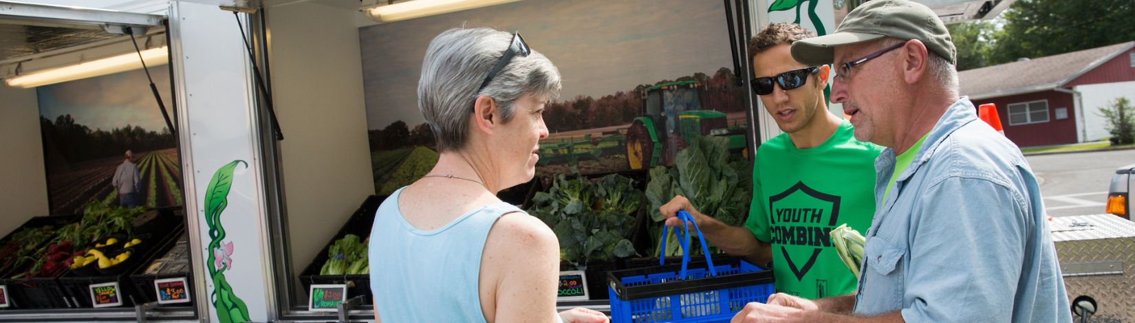 The Fresh Wagon Mobile Farm Market serving low-income and disabled residents at a housing complex in Gainesville, Florida on Tuesday, May 24th, 2016.
