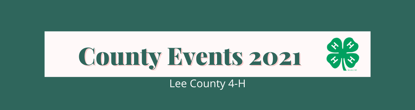 Lee County 4-H County Events April 10th, 2021 Hybrid Event for the 2020-2021 Year Welcome! We are excited to offer you a new twist on County Events for the 2020-2021 Year. To better accommodate all our youth and families, we are bringing you ... READ MORE