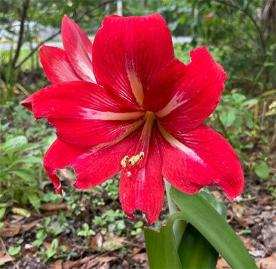 Two years ago, my husband and myself bought a home with a big garden in Crawfordville, Florida. There were several amaryllis (Hippeastrum x hybridum) plants that looked good, but weren’t blooming. I went to the Wakulla Master Gardener’s plant clinic (open Thursday mornings from 10:00 to noon) to ask their advice. They advised to dig them up and separate them in the fall. Separating any bulb will give them room for their roots to get nourishment. (On a side note, I was so happy with the progress of my plants and advice, that I took the 2021 UF/IFAS Extension Wakulla County Master Gardener Volunteer course and became one!)