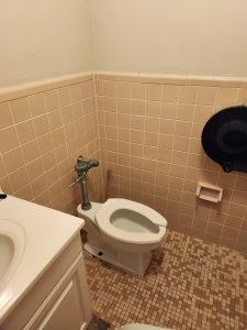 There are several affordable options for flooring that don’t require a lot of time or tools to install. Flooring costs are going to vary based on the square footage that you need to cover, the flooring style you select, and your supplies. You can quickly update the flooring in your bathroom by using vinyl planks, peel and stick floor tiles, or painting of the tile. Vinyl planks tend to work well by locking together in place and can cost anywhere from $40-$60 a box. For our project, we used one box of peel and stick tiles, a cutting knife, rolling pin, contour gauge, and caulk. A box of tiles can cost $12-40 depending on the brand. If you are using peel and stick floor tiles, depending on the surface when you begin, you may need to use an extra adhesive to ensure that it properly sticks. If you start with a smooth surface tile, you can easily put flooring over top of the existing flooring. If your tile is uneven or textured, you may need to rip it out to start with a bare surface. Many vinyl and peel and stick options come with a warranty. If you wish to paint over tile, be sure to use tile paint which is made specifically for this use. You will typically need a primer coat, base coat, and topcoat for protection. Whichever flooring route you choose to go, be sure to follow the manufacturer’s guidelines for surface preparation and application to ensure maximum durability and longevity.