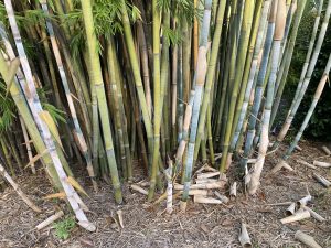 The most popular bamboo in Florida for residential properties is ‘Graceful’ (Bambusa textilis gracilis) because it has a relatively short height to 25’ and grows upright with a dark green color. Another favorite is the giant timber bamboo (Bambusa oldhamii), which has the largest culms (stems) to 3 – 4”. Other popular varieties that are commercially available from local bamboo nurseries include ‘Fernleaf’ (Bambusa multiplex), ‘Seabreeze’ (Bambusa malingensis), and Buddha Belly (Bambusa vulgaris ‘Wawin’). Green bamboos grow easily and are somewhat cold hardy.