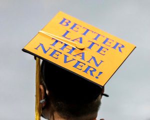 Turner’s philosophy is that there are many different paths to a degree. Some paths start through traditional freshman admission, some through transfers and others through re-entry. Turner says, it’s her job to help students find the path (or Stephenson Smith’s case, the paths) to get them to their goals. That includes a path across the stage. This past spring, the 2020 graduates were invited to Gainesville for the ceremony, and Stephenson-Smith came with his parents and his sons.