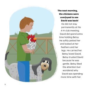 Hold onto your hats (or feathers)! Betsy’s journey takes an unexpected turn – from a 4-H meeting to the dazzling lights of the county fair. Amidst crowds, feathered friends, and a shiny award ribbon, Betsy experiences the magic of triumphs. Life on the farm settles back to normal, but with an extra touch of pride and attention, courtesy of her friend David.
