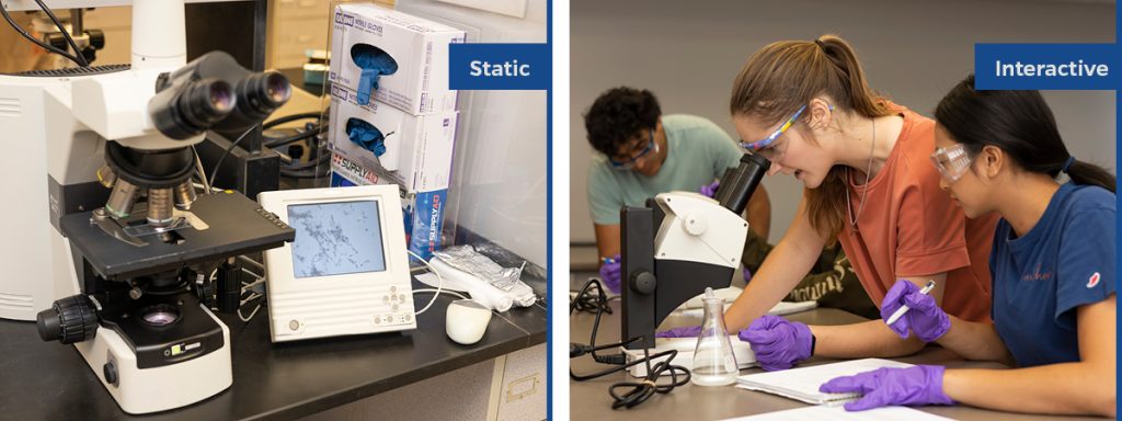 Including people in your images can increase audience engagement with your marketing piece. Look at the images below. Both show a microscope, but the image of a UF/IFAS student using a microscope is more personal than the static microscope itself.