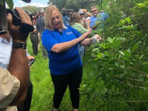 1. As for our top achievement, I begin with the release of the thrips Pseudophilothrips ichinithe thrips, the first biological control insect released against Brazilian peppertree in Florida. The tree is a serious weed; it consumes more than 700,000 of Florida land. Research for a biocontrol agent against the tree began in the 1980s. After 30 years of research by UF/IFAS scientists, in 2019, thousands of the small black insect called the Brazilian peppertree thrips for biological control of the Brazilian peppertree were released statewide by Dr. Carey Minteer at parks and privately owned ranches. Right now, the thrips are at work, feeding on Brazilian peppertrees, reducing them to a size that will be much more manageable.
