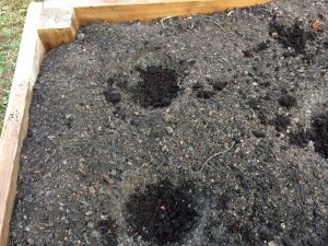 • Add one to two handfuls of fresh compost or worm castings to each hole. These soil amendments will improve soil health, introduce beneficial microbes, and provide a slow- release nutrient source for your growing seedlings.