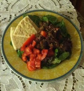 The provided very basic recipe can be adapted to suit your personal/regional taste. Don’t like eggplant? Leave it out! Have a lot of okra or yellow squash? Add it! Like olives, nuts or raisins? Add them to your portion. Rather not use vegetable oil? Don’t! Want to cover it in your favorite spicy olive oil? Do you have some extra zucchini? I think you get the picture.
