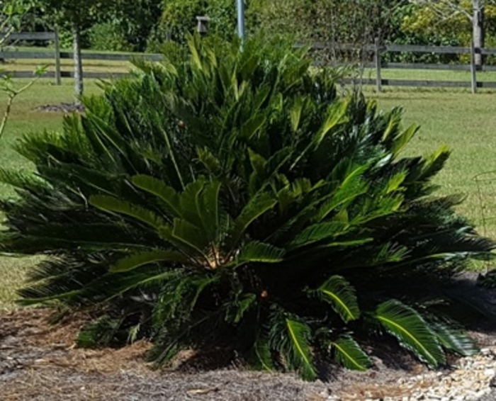 Additional notes: Sagos are very slow growing evergreen plants that grow well in full sun, but can also be maintained as a house plant in a sunny spot. They can live for many years. An example of this can be found at Goodwood Plantation where one specimen is 150 years old! All parts of this plant are toxic to animals including humans with the seeds containing the highest levels of toxin.