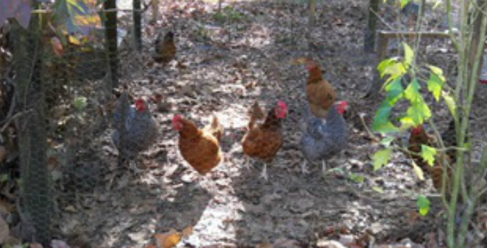 Many people with a yard consider raising chickens as a source of homegrown eggs. Chickens can also be a very useful addition to the home gardening team. We combine raising a few chickens with vegetable gardening here in Wakulla. We keep our chickens in a pen at night, and let them out during the day when we are at home. Our vegetable gardens are fenced off to exclude the chickens, but they roam freely within our fenced yard and woods. Here are some of the benefits we have found in combining chickens and gardening: