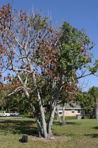 “What is happening to these trees?” The plant diagnostic clinic at UF/IFAS Extension Manatee County frequently receives calls from residents concerned about dying trees along the roadsides. Trees in the Laurel family, including redbay, swamp bay, sassafras, and our much-loved avocado, are dying from a fungal disease known as laurel wilt. In the United States, laurel wilt was first detected in Georgia in 2002. It has since spread throughout Florida and as far west as Texas. The redbay ambrosia beetle which carries the fungus most likely arrived in packing materials such as wooden pallets or crates. Movement of infested firewood by people has contributed to its widespread distribution.
