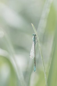 Another way that might help identification is to think of what a damsel is to a dragon. Small, petite and weaker, compared to a large powerful and really big creature. Damselflies also prefer to perch, rather than continuously flying about.