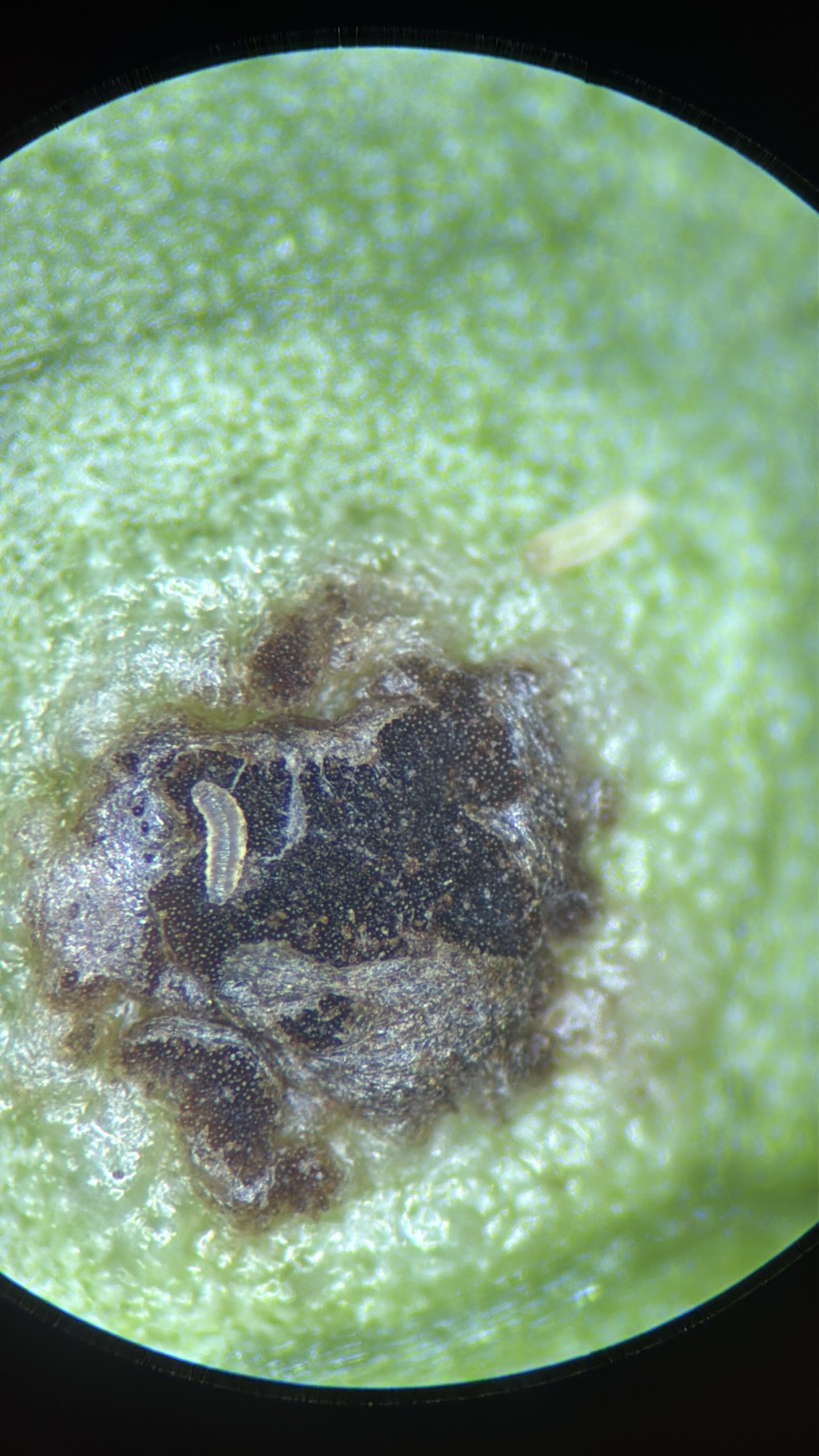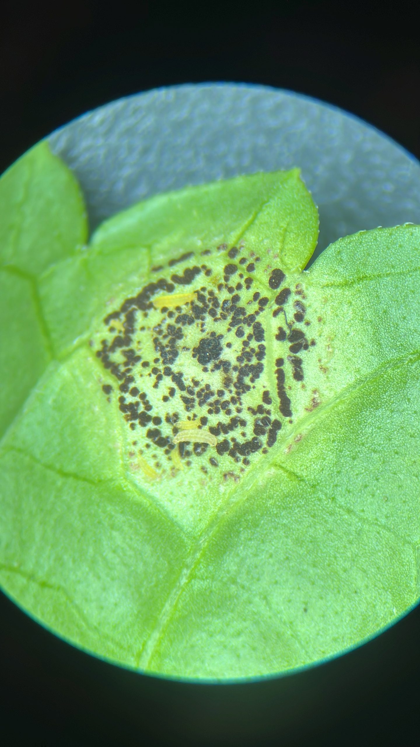 It’s a reminder that even a single infected leaf can host a miniature ecosystem: the plant, the fungus, and an insect interacting in balance.